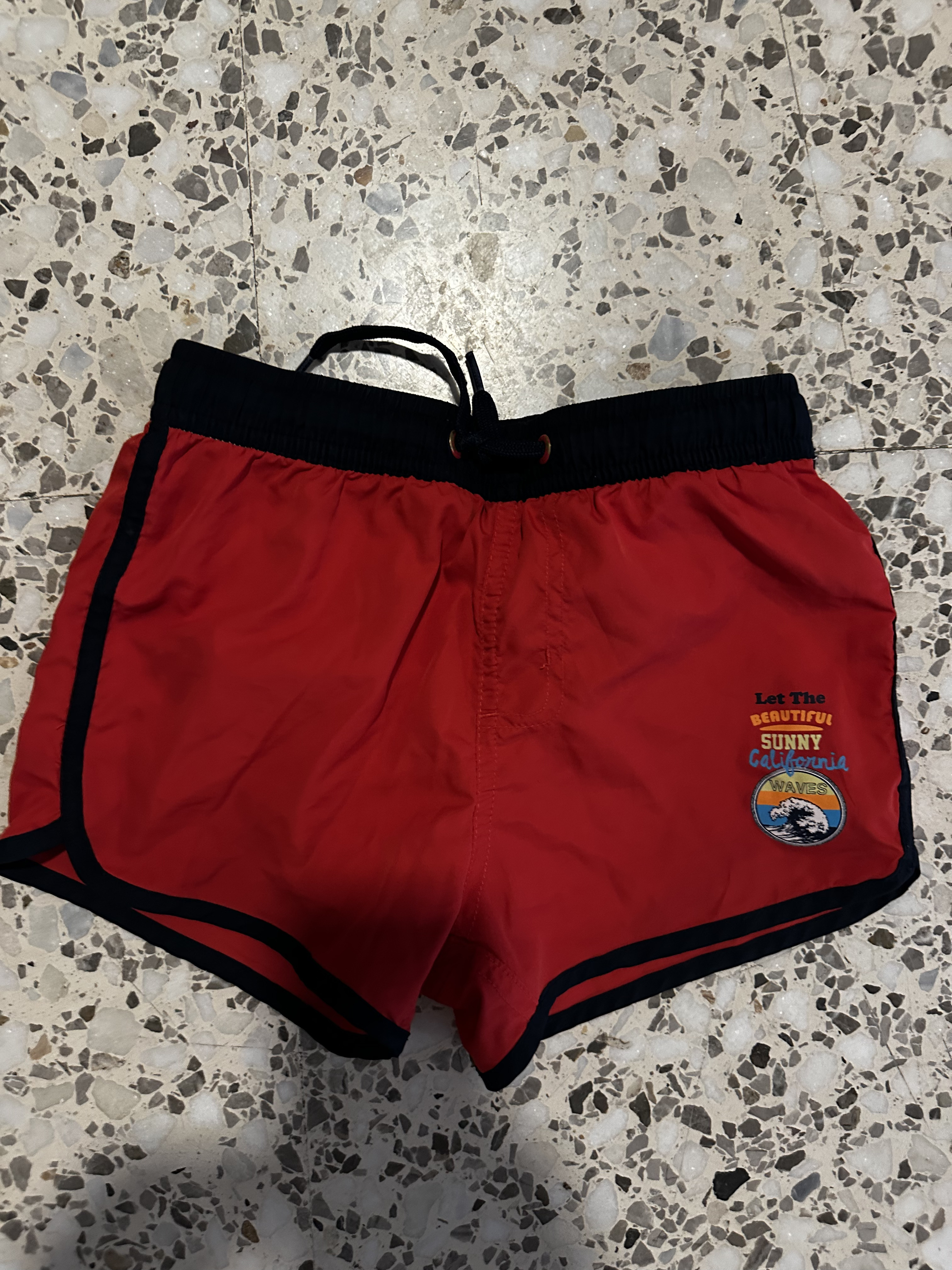 Bañador corto con cintura elástica y cordón; parche ‘Sunny California’ en el bajo.