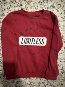 Sudadera verde capucha, texto “Infinity, We will never be standard”.