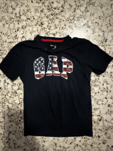 Camiseta manga larga azul marino, texto “Bonjour la vie est belle”.