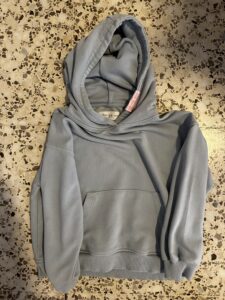 Sudadera azul claro con capucha y bolsillo delantero.