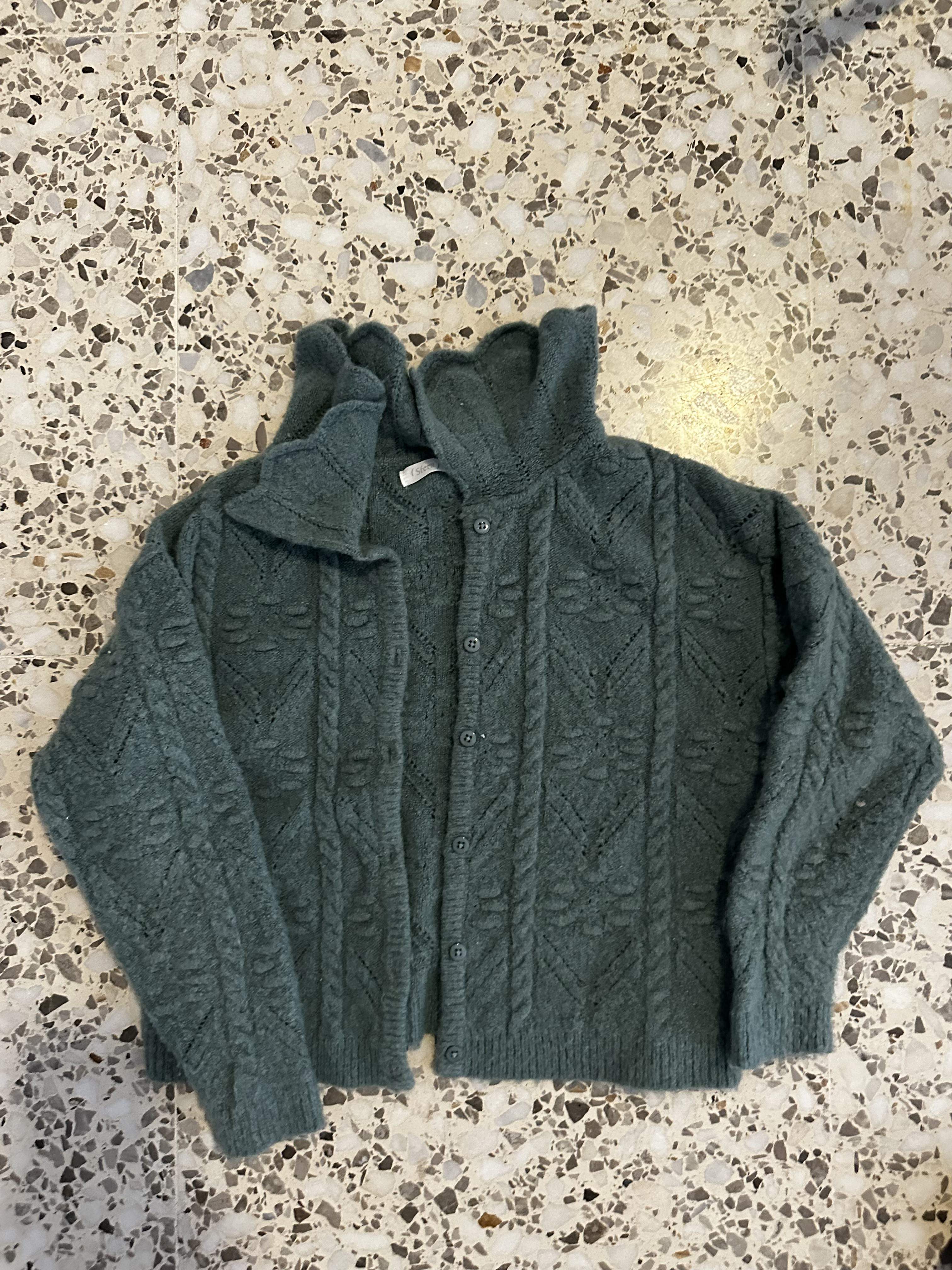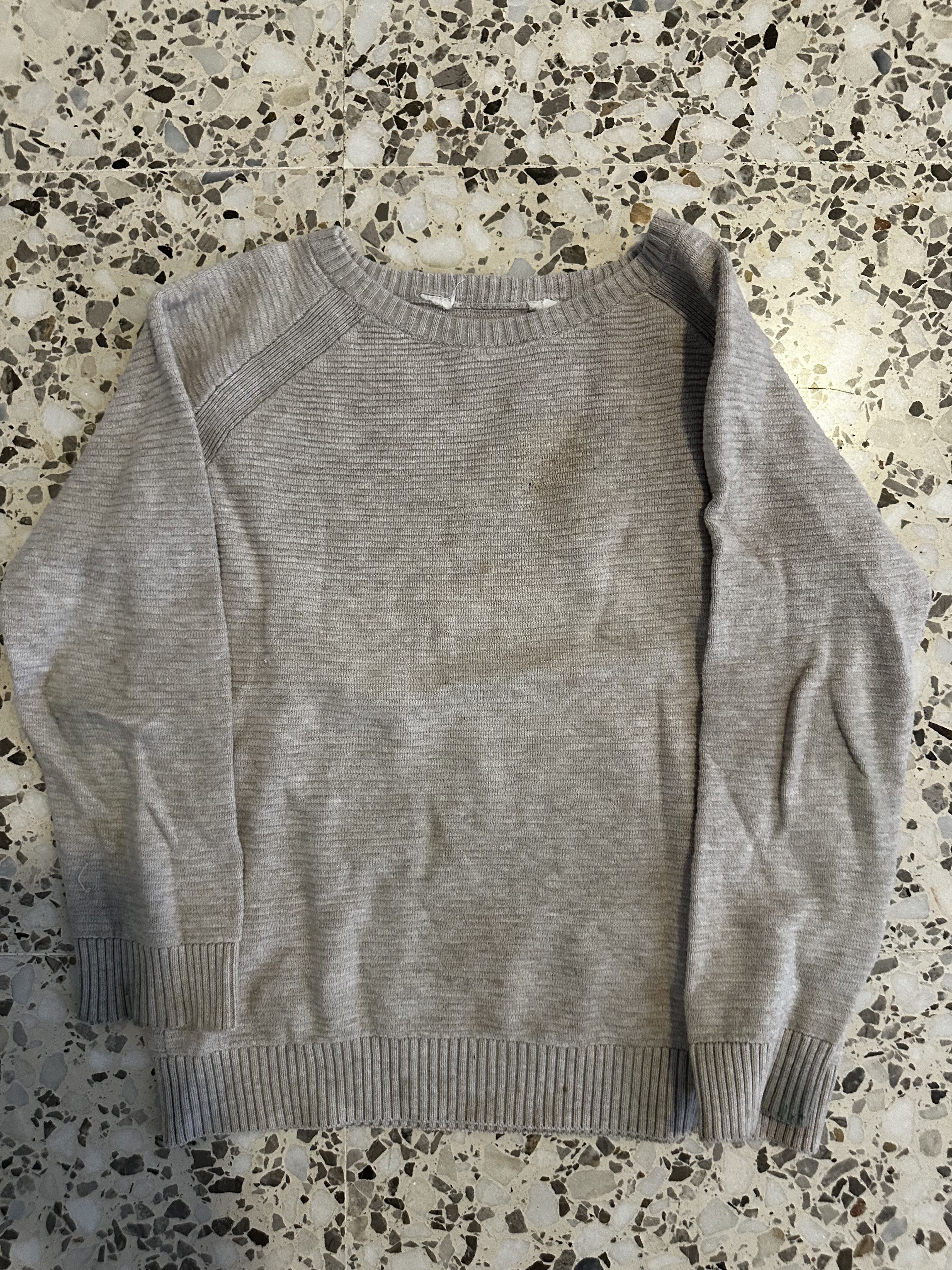 Jersey gris de punto, sin detalles visibles.