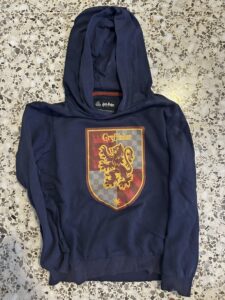 Sudadera azul marino con capucha y escudo Gryffindor.