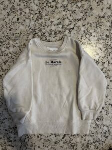 Sudadera blanca con inscripción “Le Marais École de Musique”.