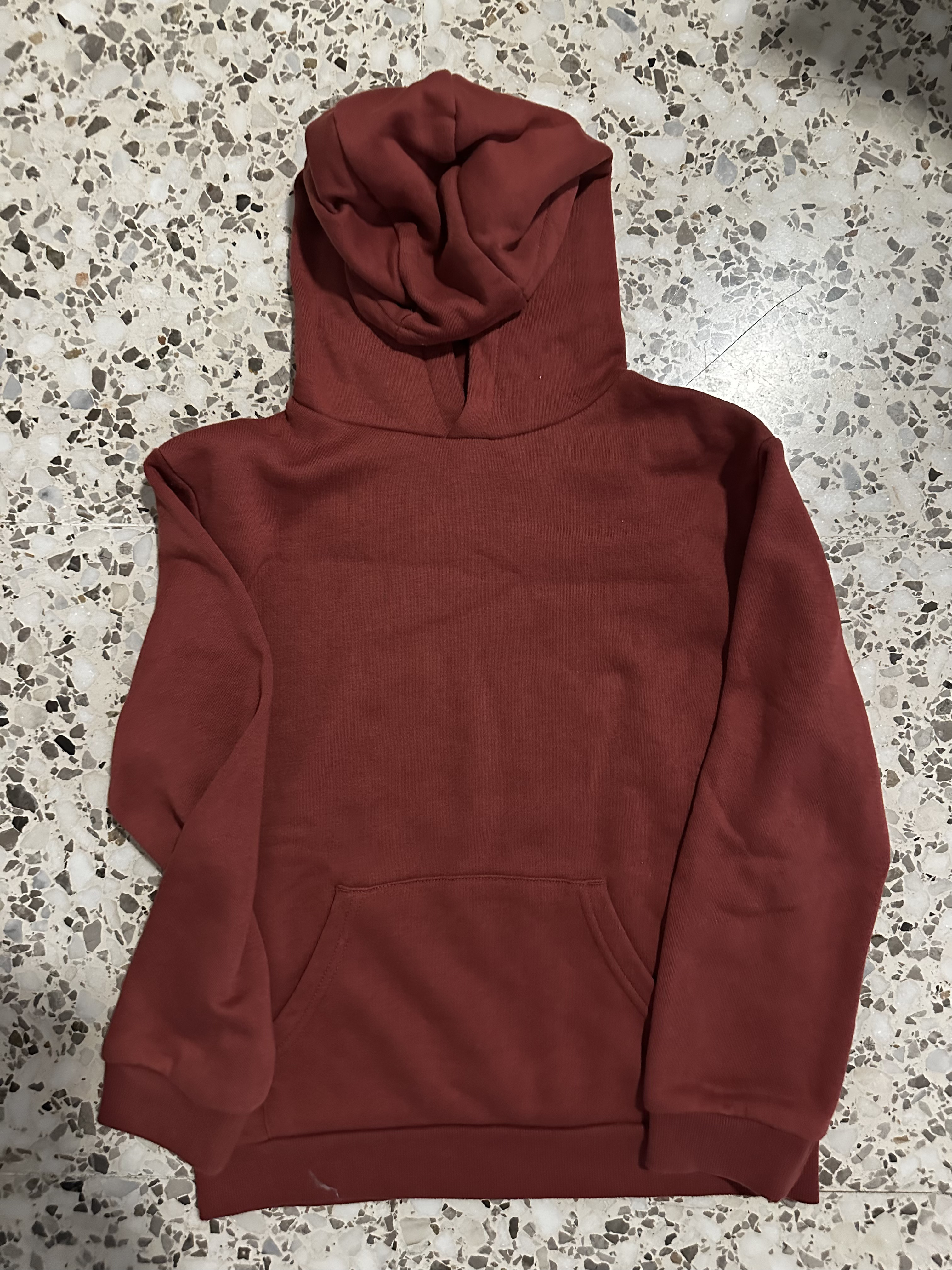 Sudadera lisa sin capucha, cuello redondo y puños elásticos, color granate.