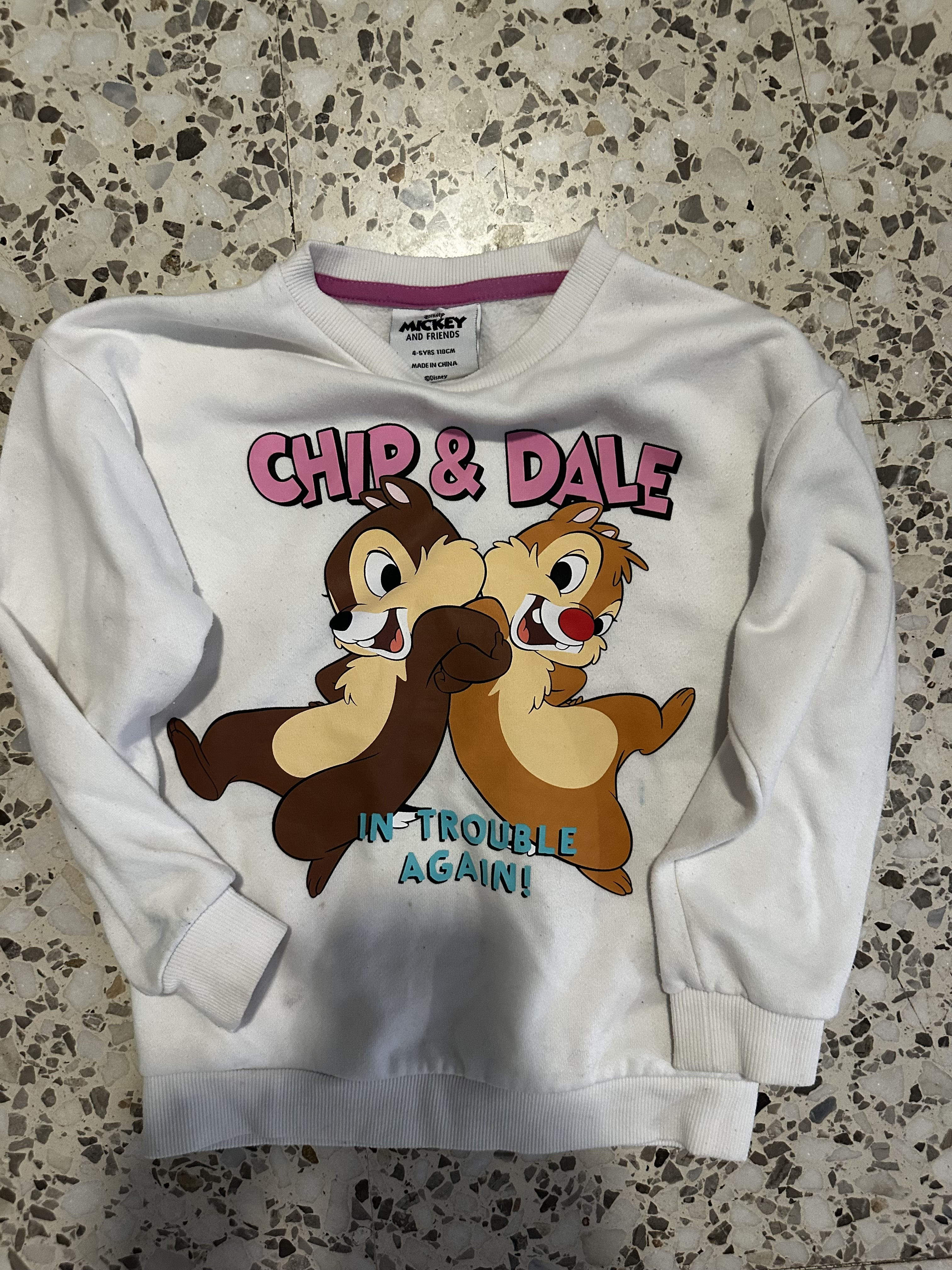 Sudadera con dibujo de Chip y Dale y texto ‘In Trouble Again!’.